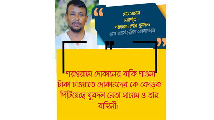 আহত ব্যবসায়ীর নাম সুমন হোসেন। তিনি পরশুরাম উত্তর বাজারের একজন সুপরিচিত ব্যবসায়ী এবং দীর্ঘদিন ধরে স্থানীয়ভাবে ব্যবসা পরিচালনা করে আসছেন। অভিযোগে বলা হয়, দক্ষিণ কোলাপাড়া ইউনিয়নের ৫নং ওয়ার্ড যুবদলের সভাপতি মো. ছায়েম এর কাছে পূর্বের বাকি বকেয়া টাকা চাইলে ক্ষিপ্ত হয়ে ওঠেন তিনি। পরে তাঁর নেতৃত্বে একদল লোক সুমনের ওপর হামলা চালায়।