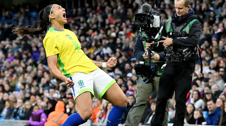 জাপানের বিপক্ষে জয় দিয়ে সাম্প্রতিক সময়ে প্রীতি ম্যাচের মিশন শুরু করেছিল ব্রাজিল নারী দল। গতকাল (শনিবার) ম্যানচেস্টার সিটির মাঠ ইতিহাদে তারা মুখোমুখি হয় ইউরোপসেরা ইংল্যান্ডের। ম্যাচে স্বাগতিকদের শুরুটা হয়েছিল বাজেভাবে। ২০ মিনিটেই তারা দুইবার গোল হজম করে। বিয়া জানেরাত্তো এবং দুদিনহা গোল করেন ব্রাজিলের পক্ষে। দ্বিতীয়ার্ধে পেনাল্টিতে এক গোল শোধ করেন ইংল্যান্ডের জর্জিয়া স্টানওয়ে।